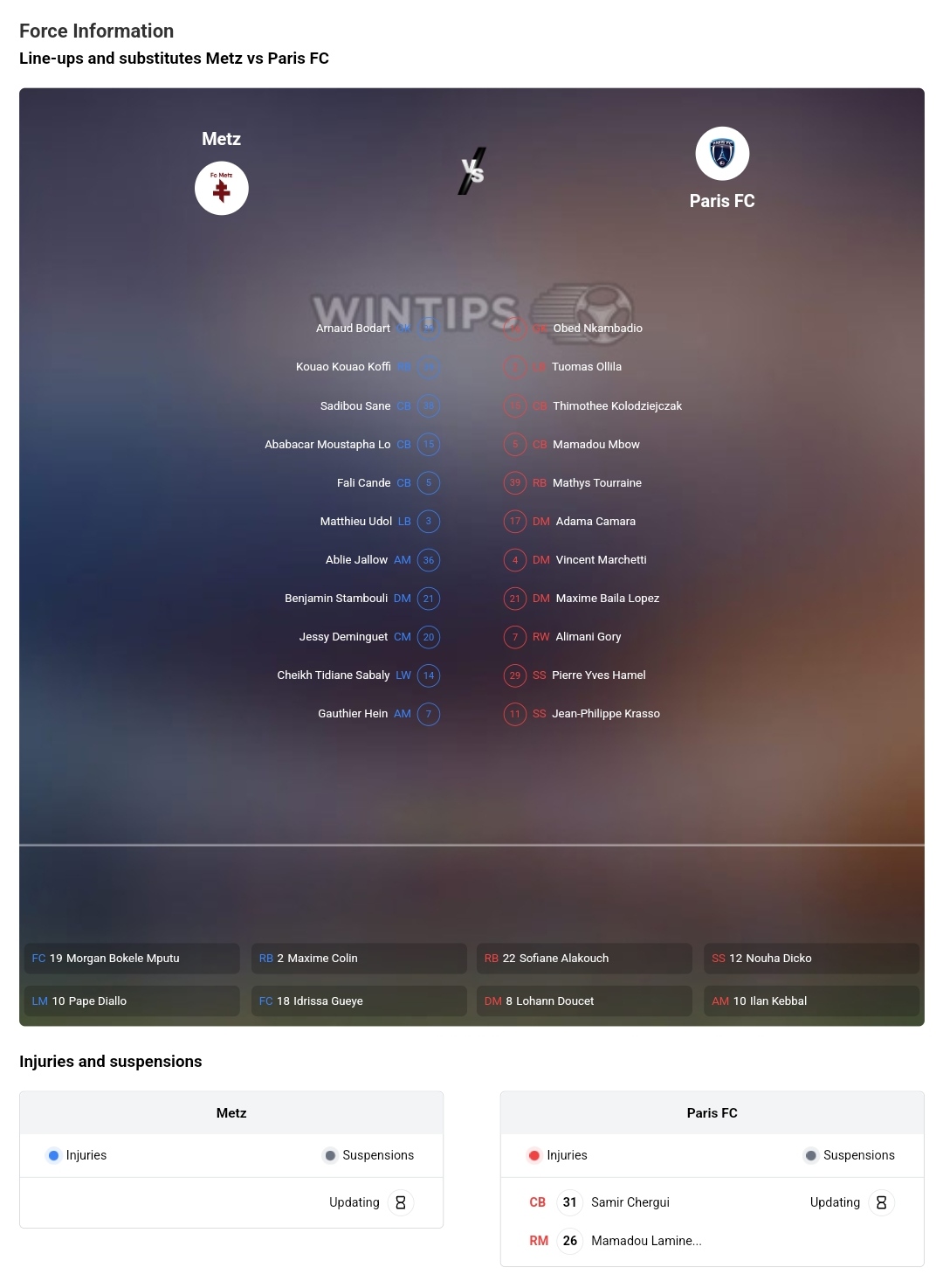 Metz vs Paris FC Team News